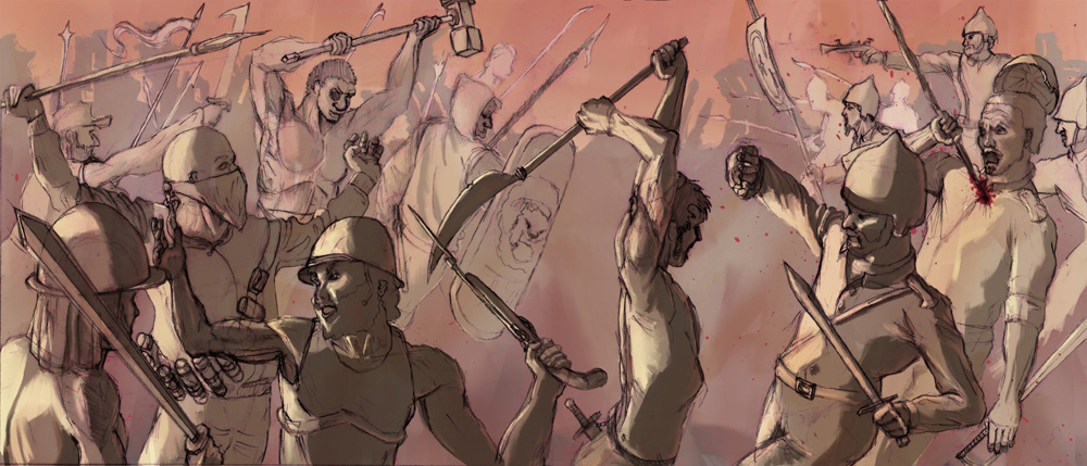 The battle of Jericho, re-imagined as a dystopian sci-fi alternate reality battle. From 2006 using Photoshop.